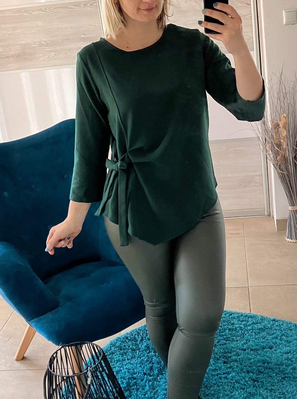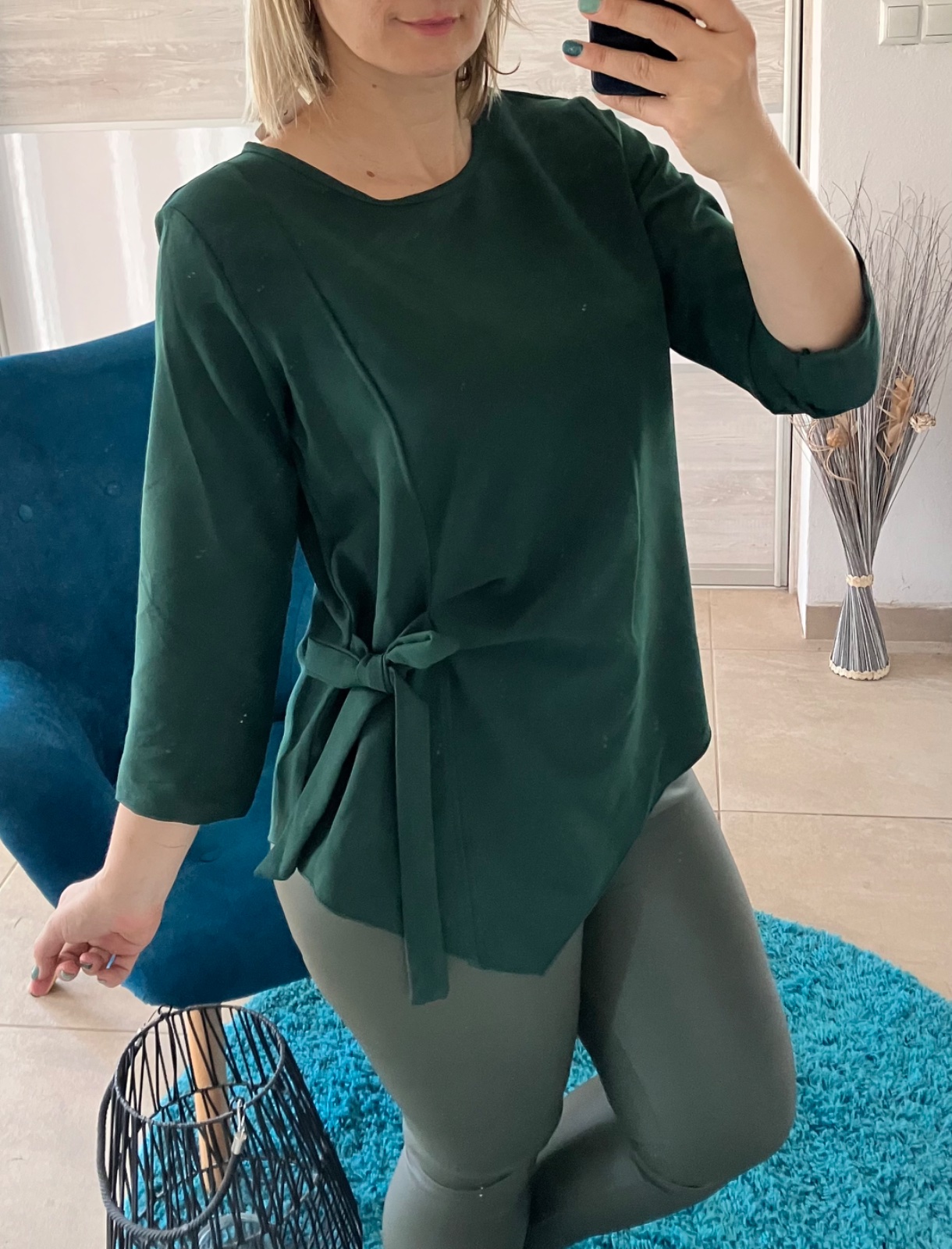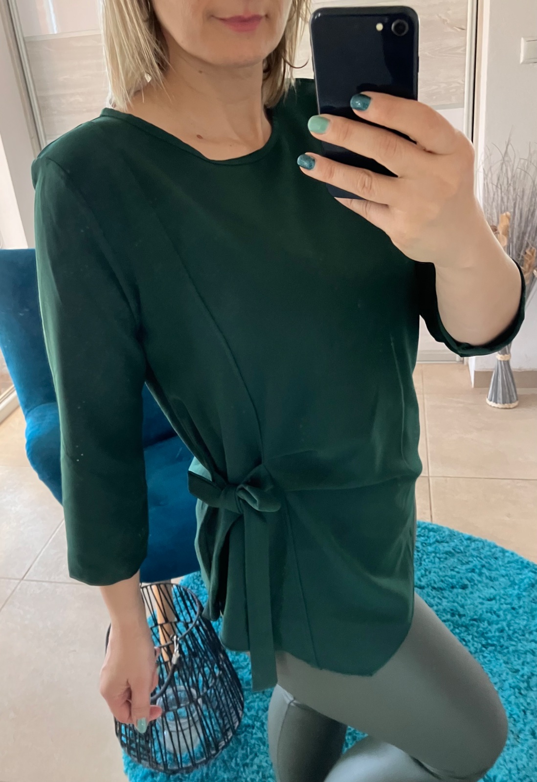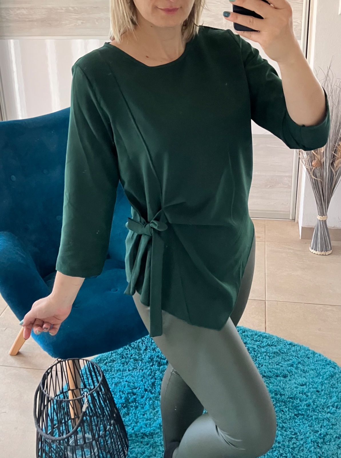 Dámska blúzka s dlhým rukávom, asymetrická. Materiál:55%viskóza40%polyester,5%elastan. Veľkosť UNI (vhodná pre S,M,L). Krajina pôvodu: Taliansko.