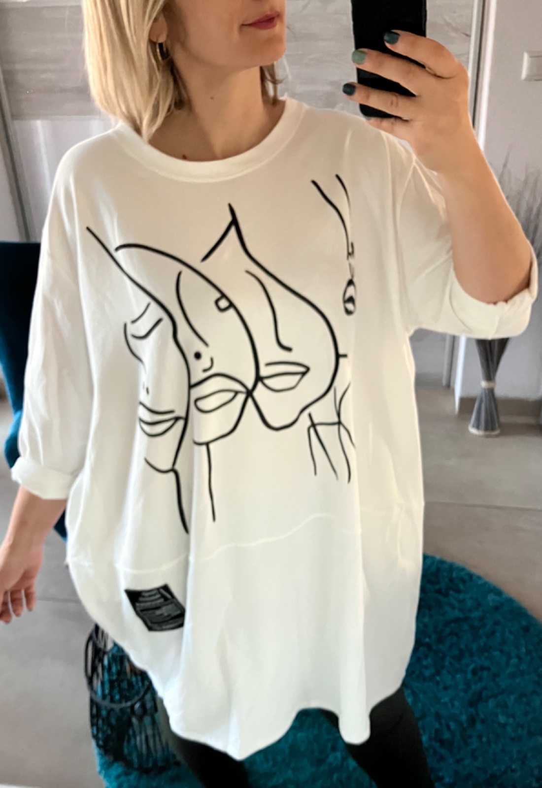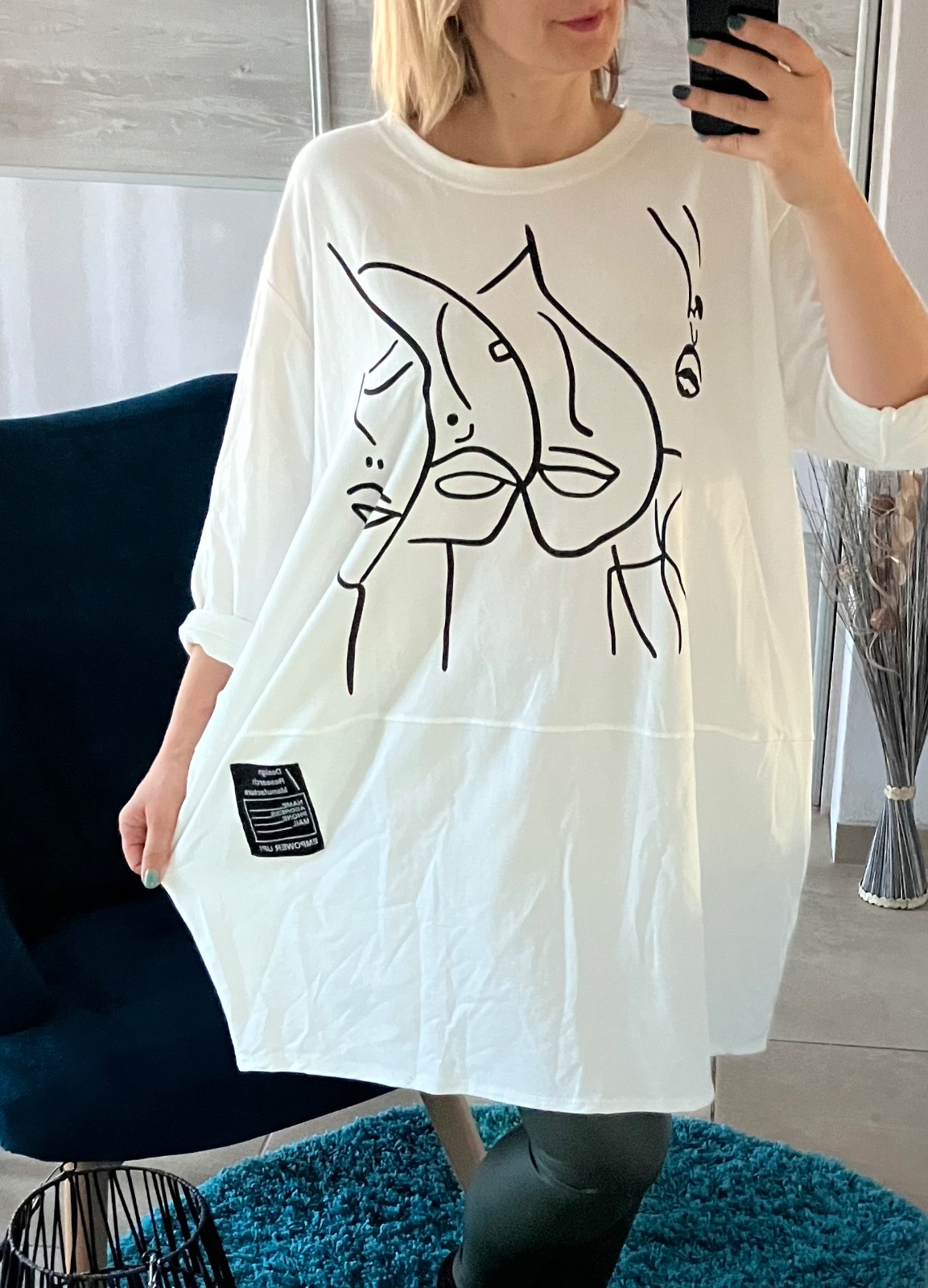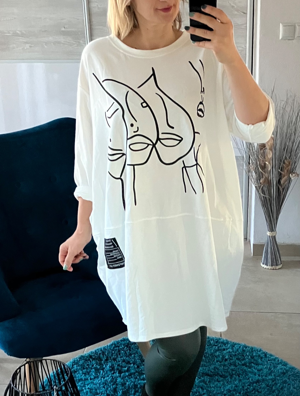 Dámska predĺžená mikina, tenšia, so vzorom, oversize. Okrúhly výstrih. Dve bočné vrecká. Elastická. Vhodná aj ako mini šaty. Materiál:100%bavlna. Veľkosť UNI (vhodná pre L,XL,XXL). Krajina pôvodu: Taliansko.