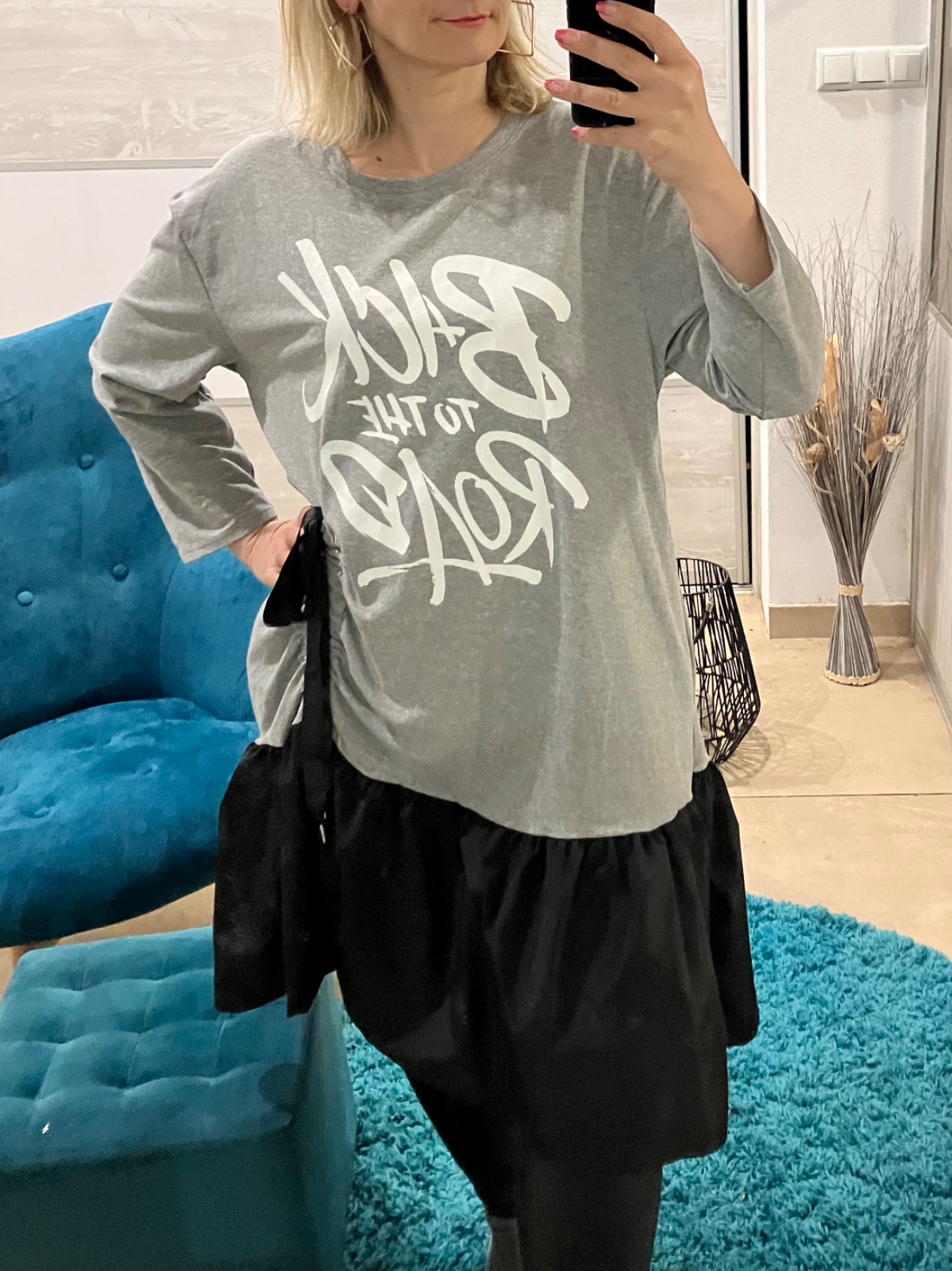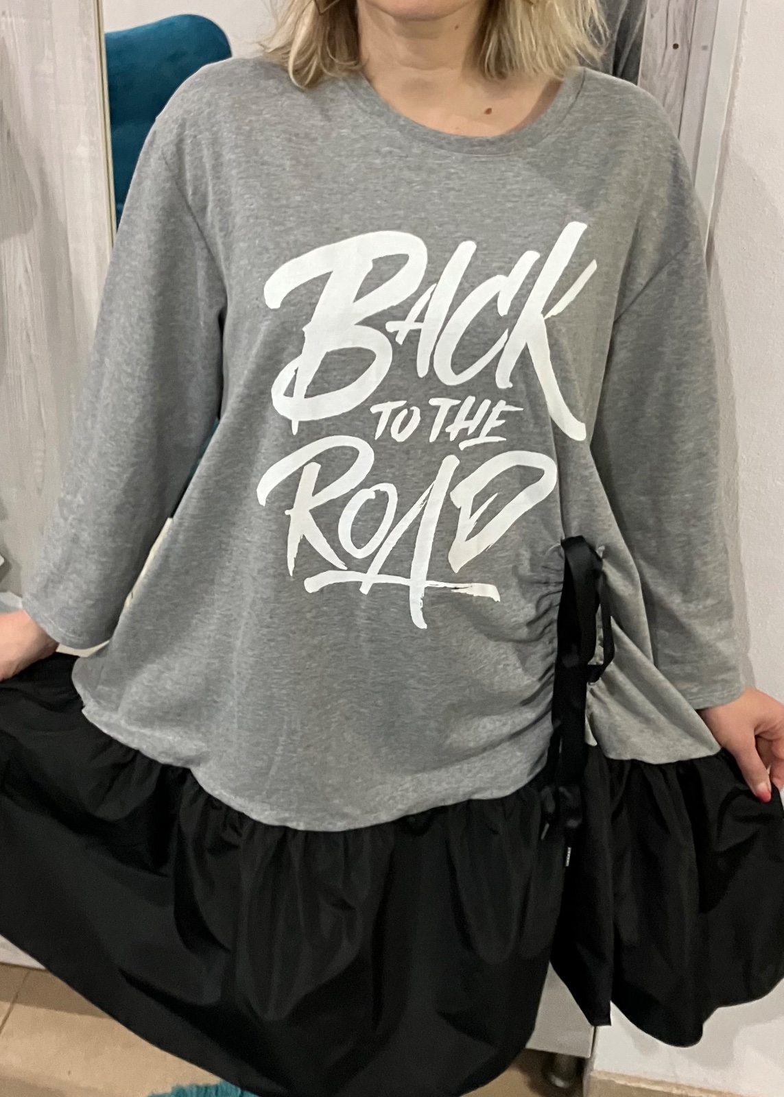 ROZMERY: dĺžka: 105cm, dĺžka rukáv od krku:64cm, dĺžka rukáv:49,5cm, pod pazuchami meraná šírka: 2x60cm, celkom roztiahnutá šírka: 2x70cm, od pazuchy dĺžka dole: 75cm.