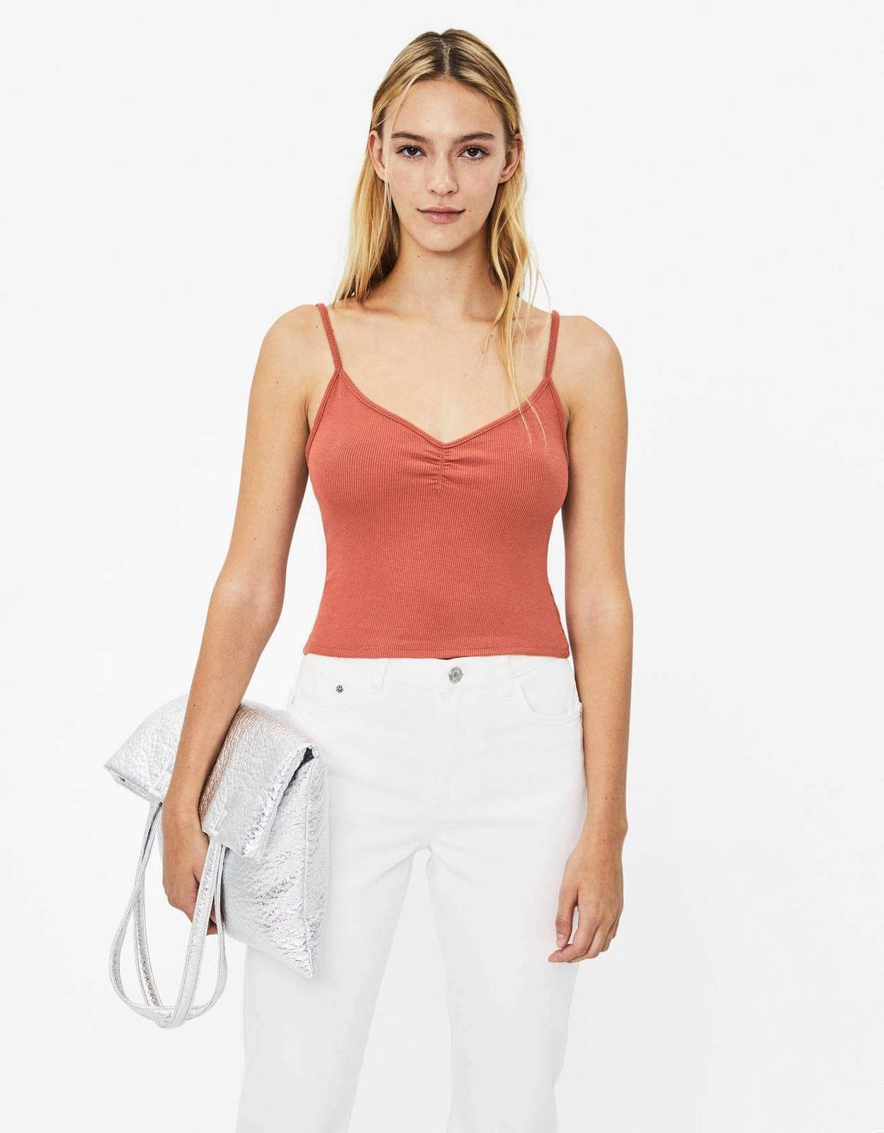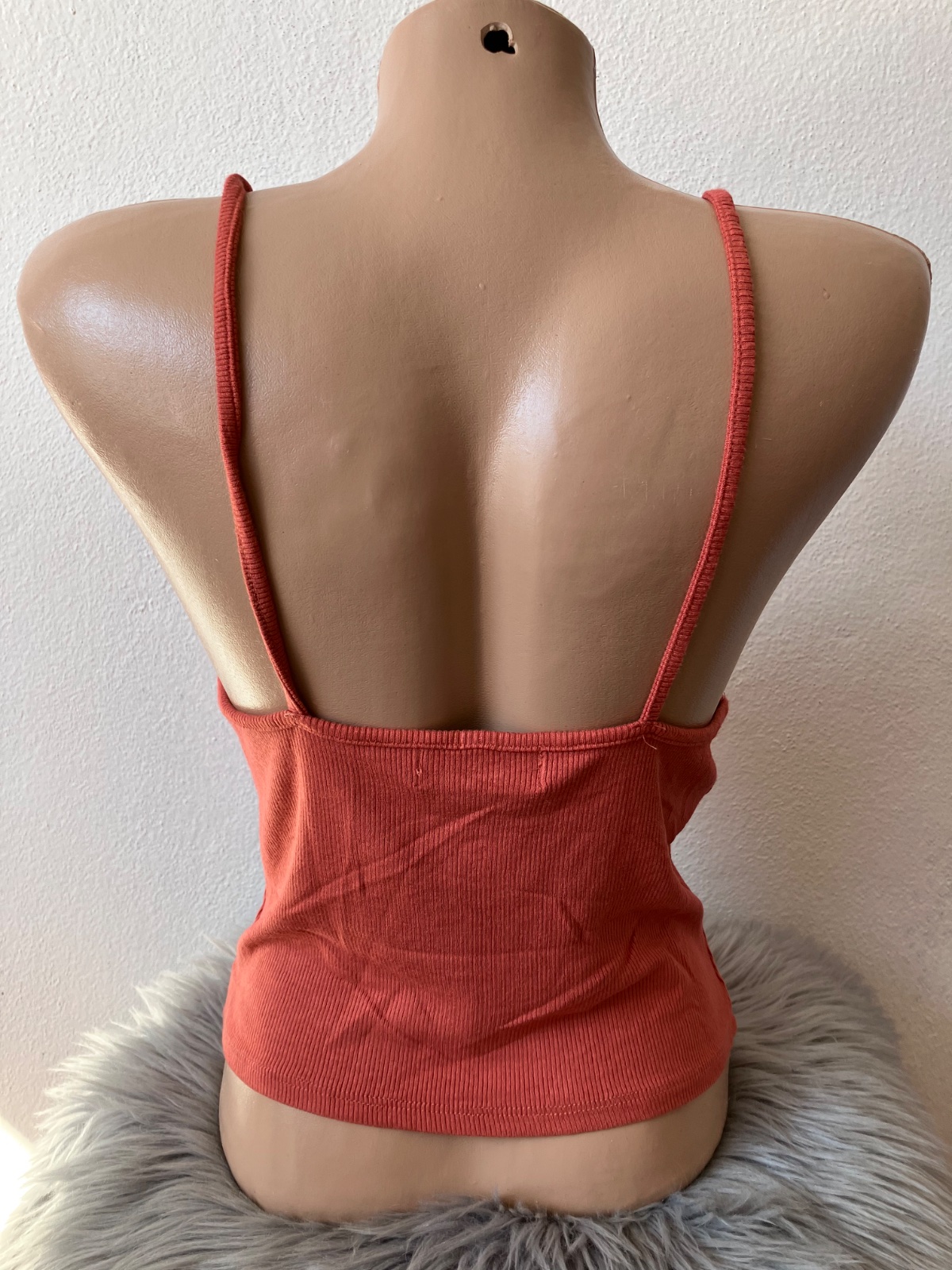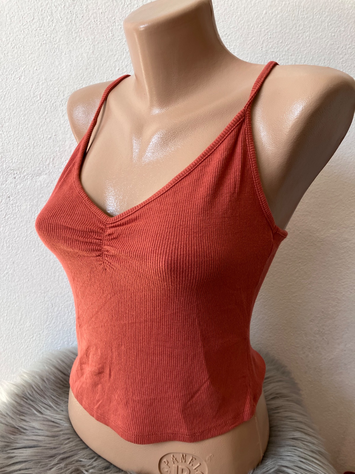 Krátke tričko na tenké ramienka dámske, dievčenské , jednofarebné škoricové, elastické, tenké, materiál 95%viskóza,5%elastan.