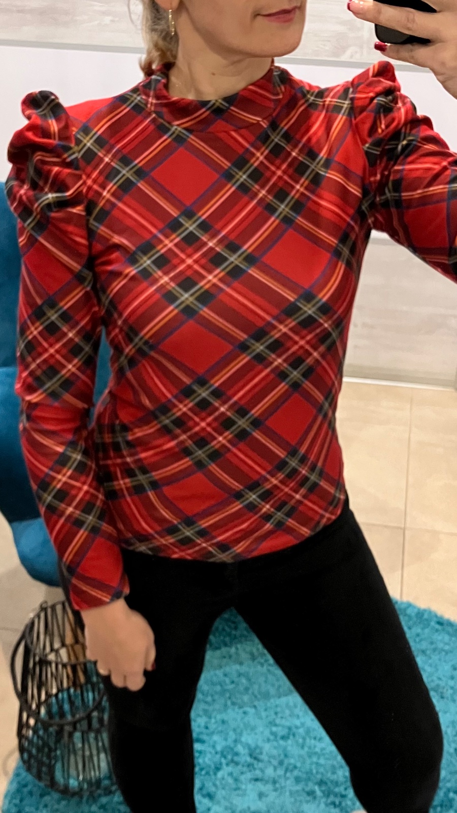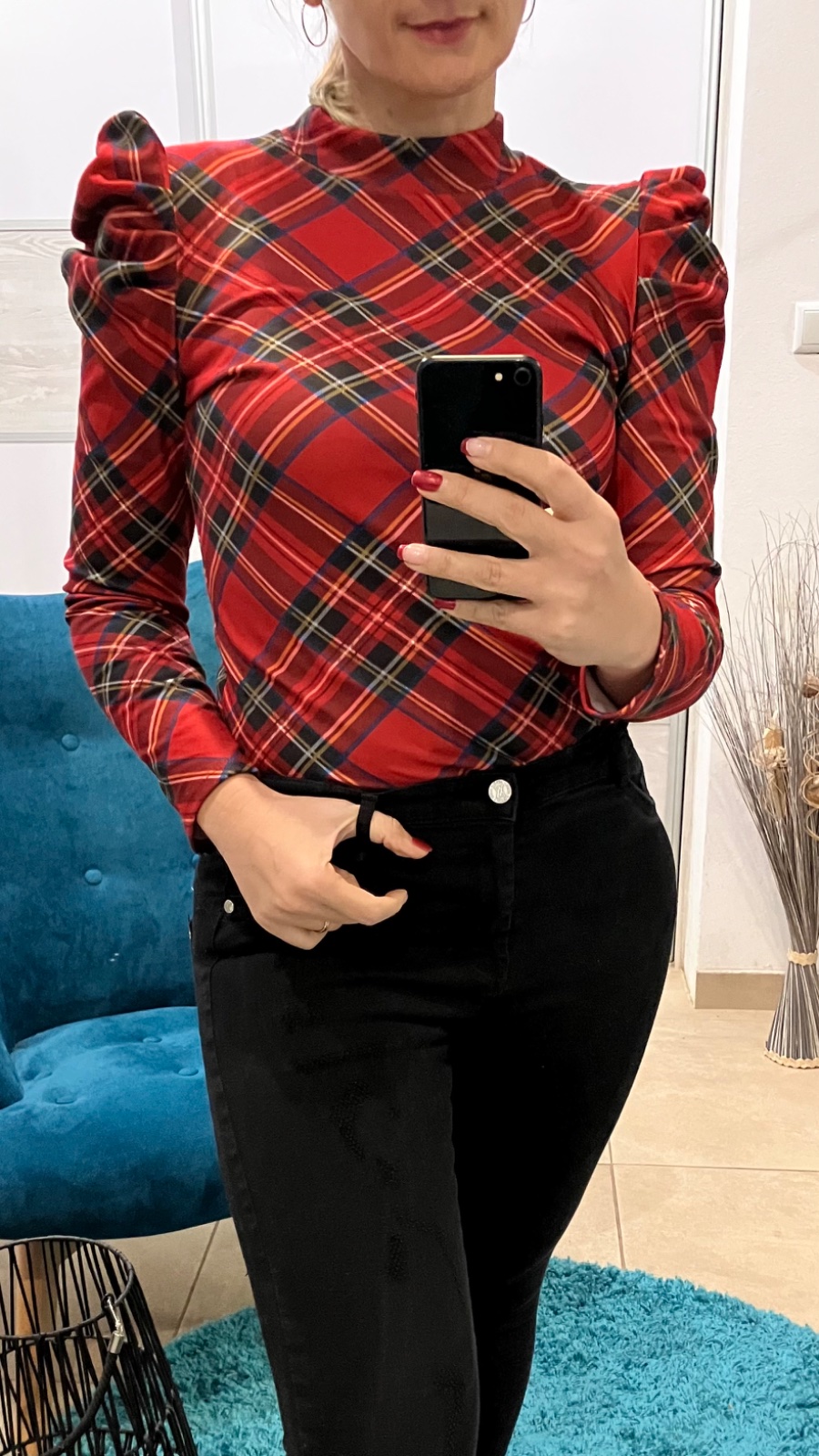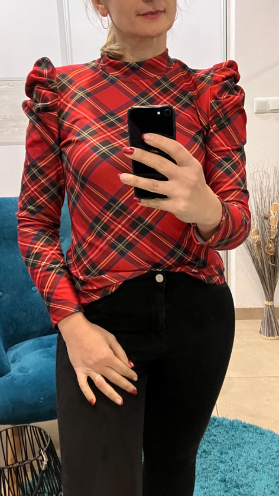 Dámsky top s malým rolákom a volánovými rukávmi, jemne elastický. Materiál 95%polyester 5%elastan. Veľkosť UNI (vhodná pre S,M). Krajina pôvodu: Taliansko.