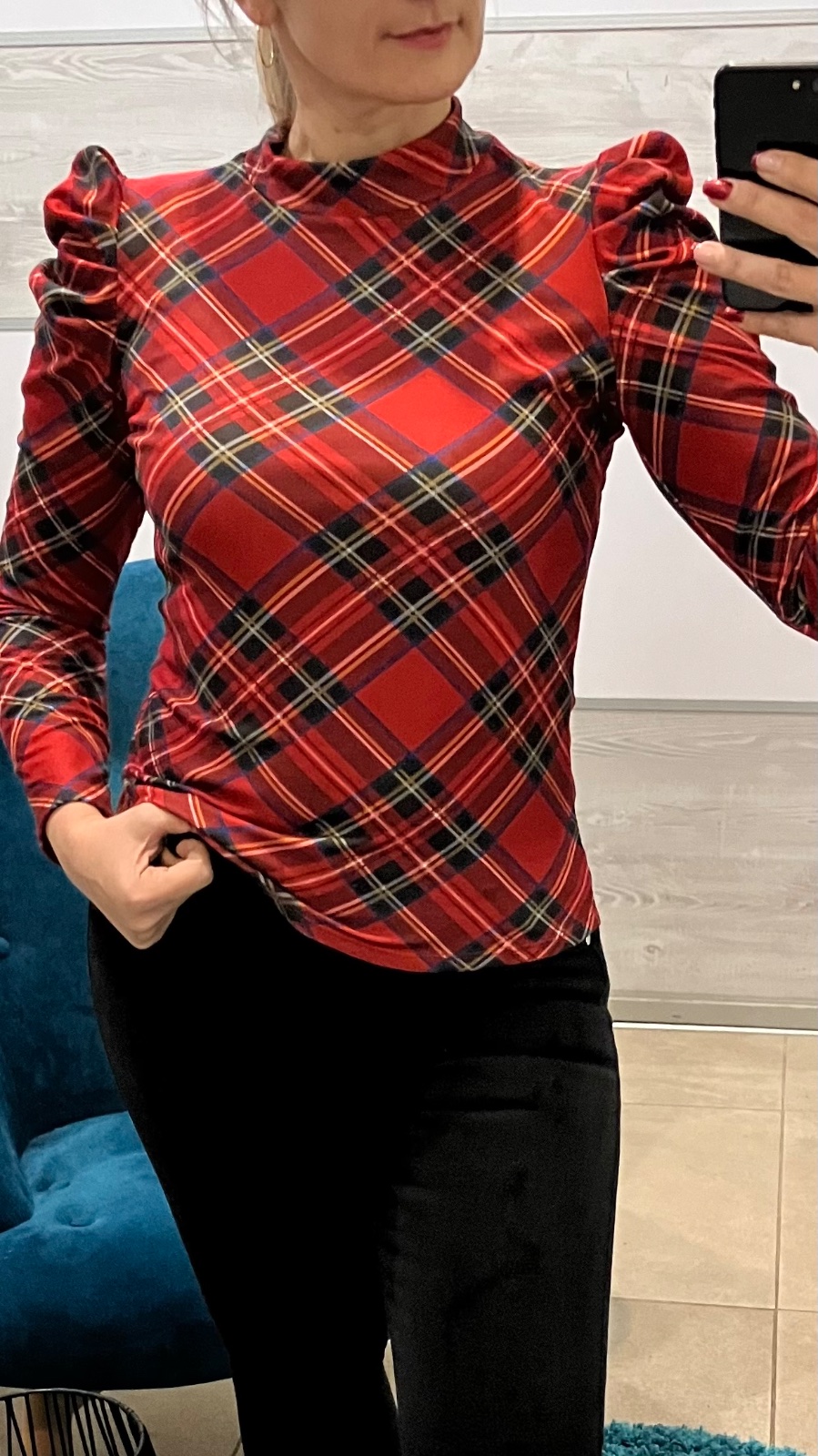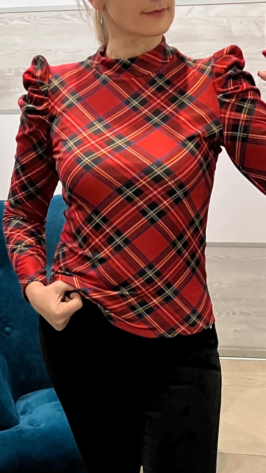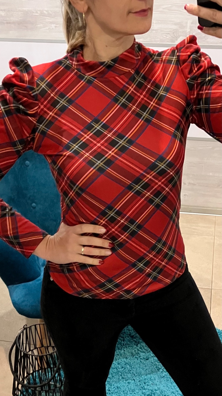 Dámsky top s malým rolákom a volánovými rukávmi, jemne elastický. Materiál 95%polyester 5%elastan. Veľkosť UNI (vhodná pre S,M). Krajina pôvodu: Taliansko.