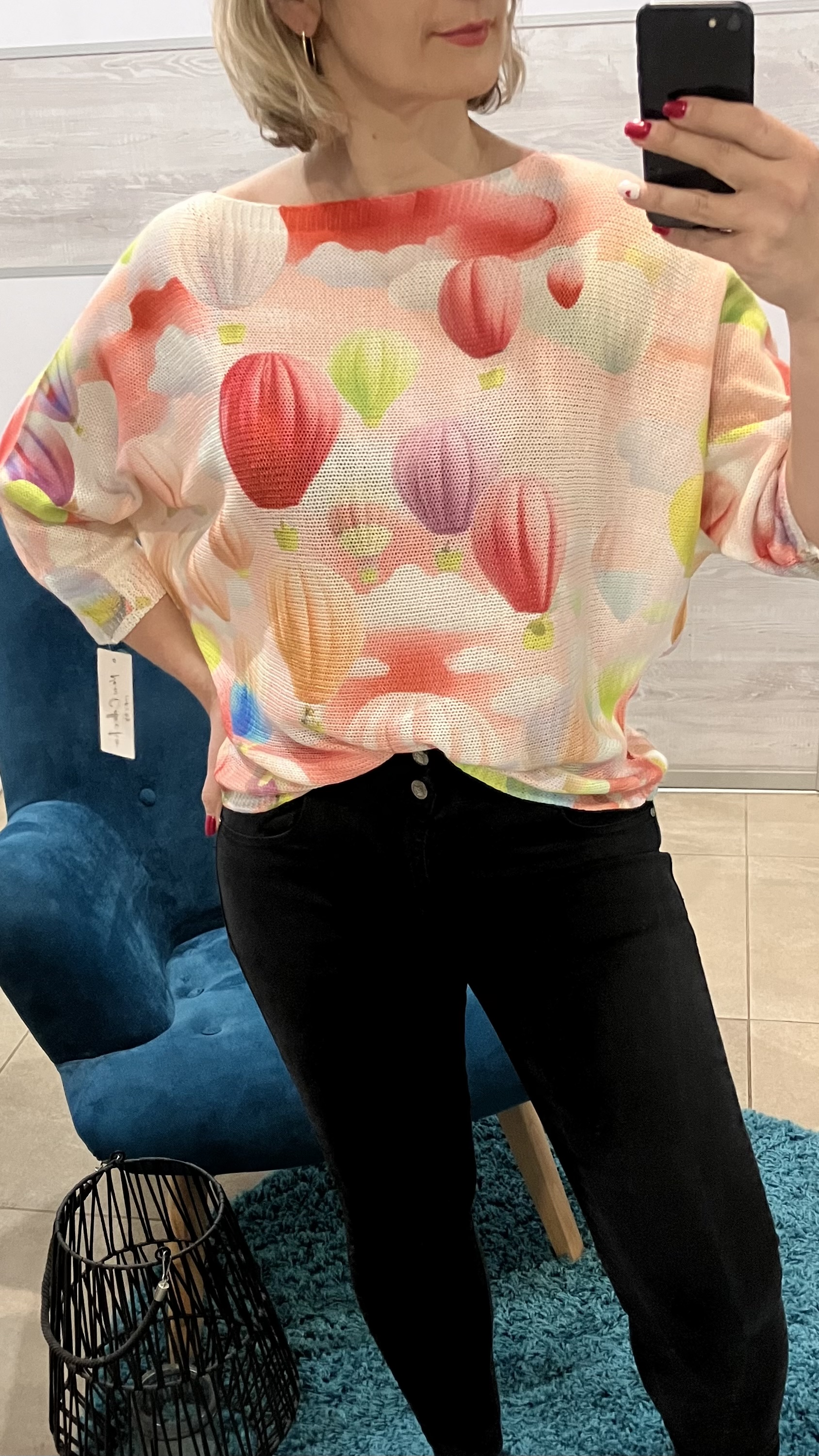 Pohodlné dámske tričko s trojštvrťovým rukávom, veľmi tenkého svetrového materiálu. Ležerné, farebné, elastické, veľmi tenké. Materiál:65%polyester, 35%viskóza.Veľkosť UNI (vhodná pre S,M,L,XL). Krajina pôvodu: Taliansko.